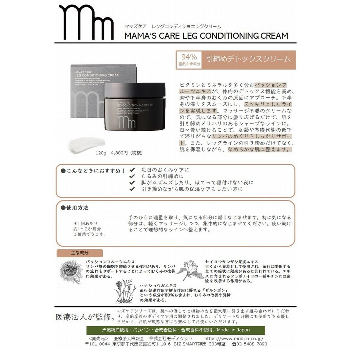 商品名:ママズケア レッグコンディショニングクリーム 120g